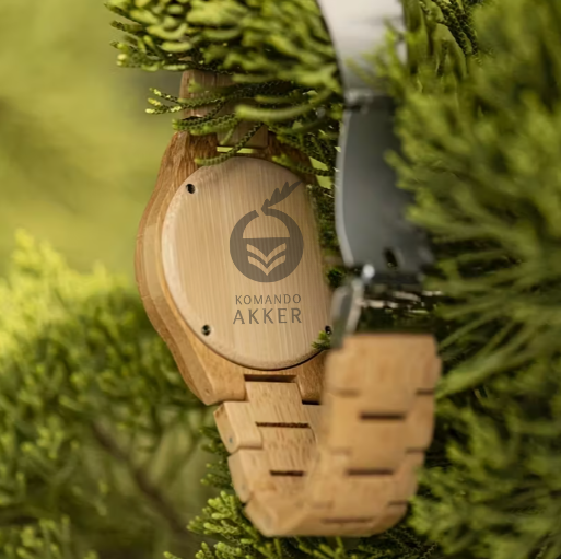 Komando-Akker Stylish Bamboo Men's Watch, Handcrafted with a Simple Quartz Mechanism
