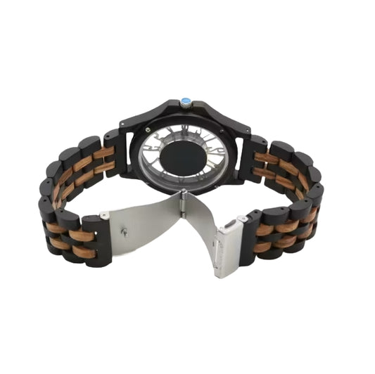 Men’s Vintage Wooden Hollow-Out Quartz Watch – Bold, Elegant, and Naturally Refined
