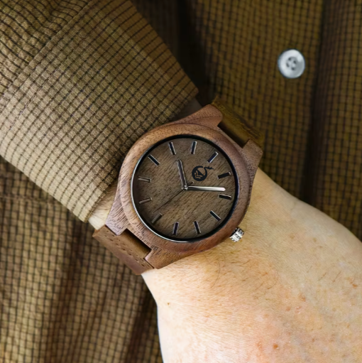 Men's Natural Walnut Wood Quartz Watch - Strap, Analog Quartz Movement with Brown Dial & Black Hands, High Quality (30m) - Casual & Formal Watch for Casual Attire